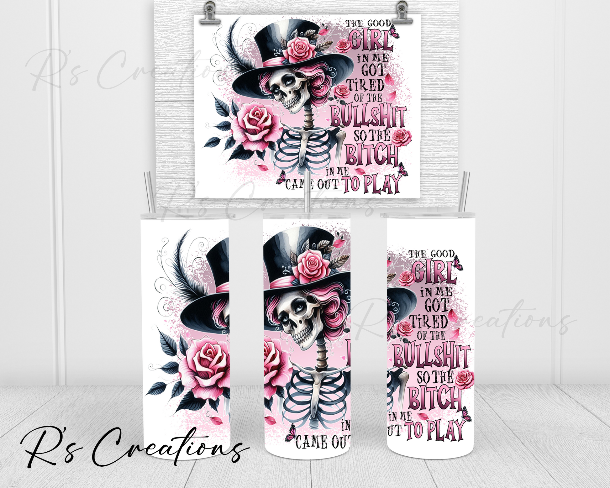 20oz stainless steel tumbler, skeleton, Bitch in me