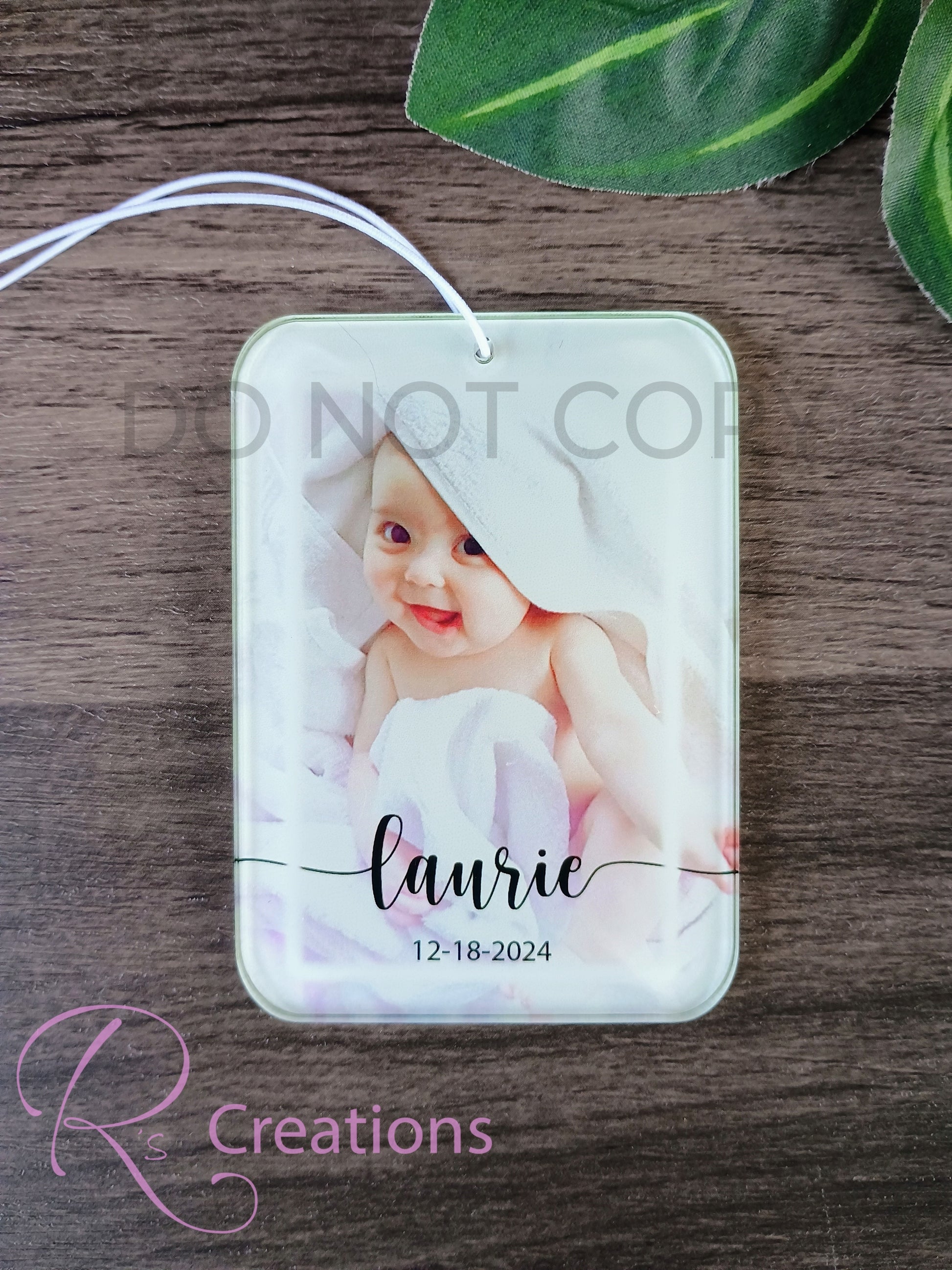 Customized with your photo, names and date. All are optional. Please choose in the text box info. Please know that the more writing you want, the smaller the writing will be.