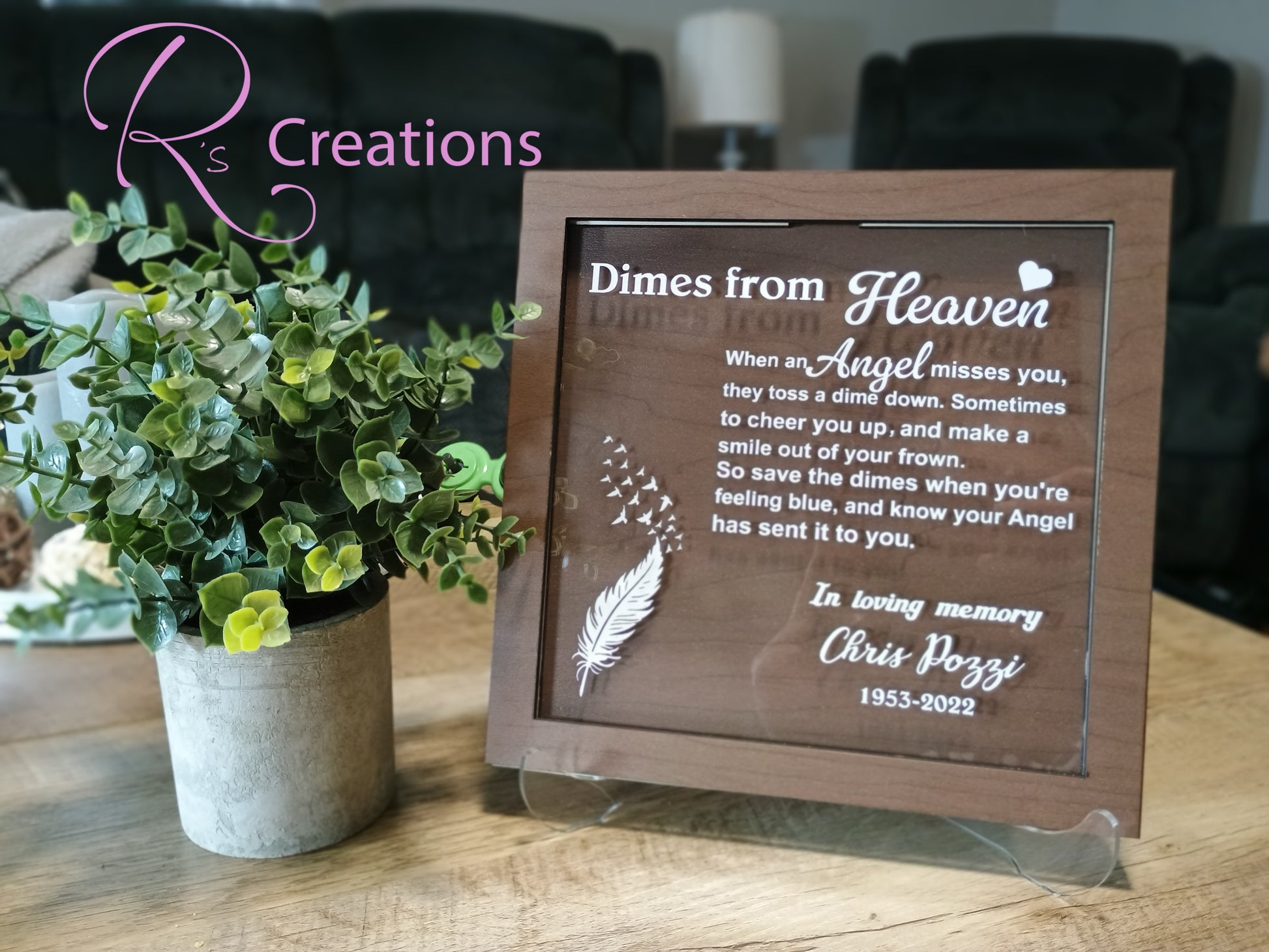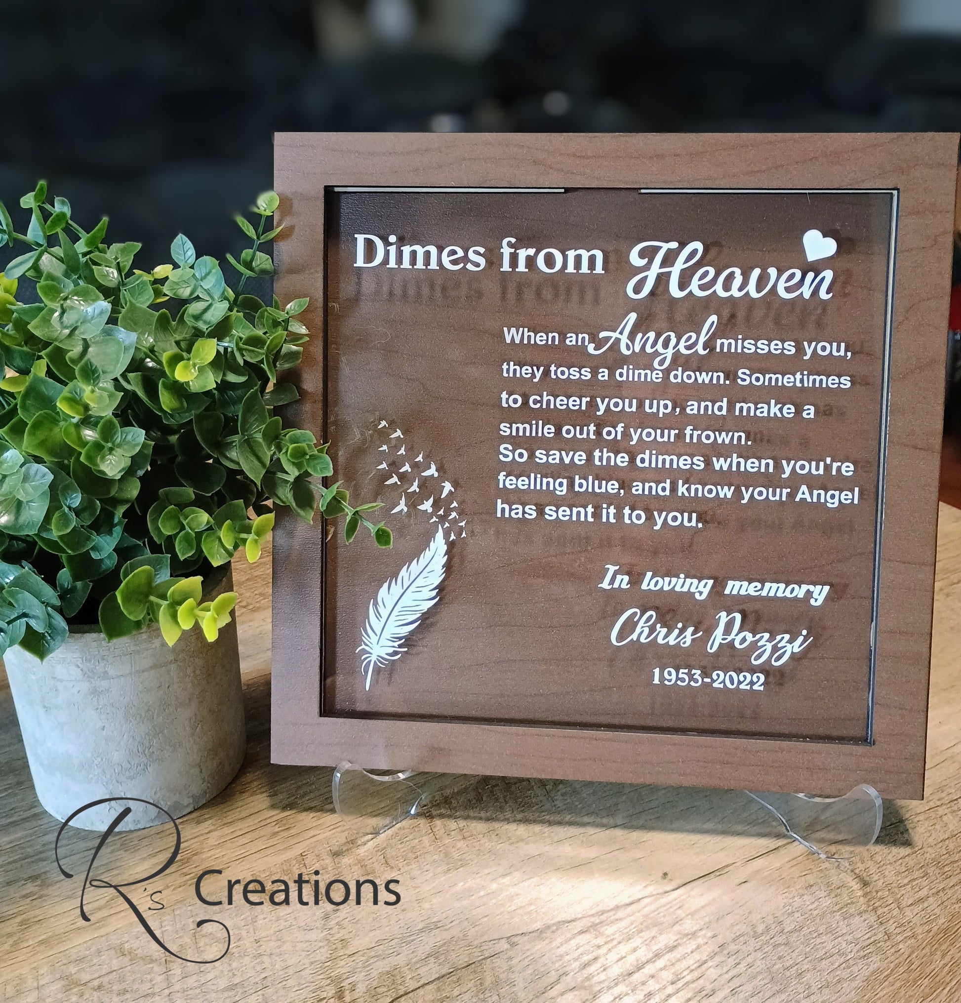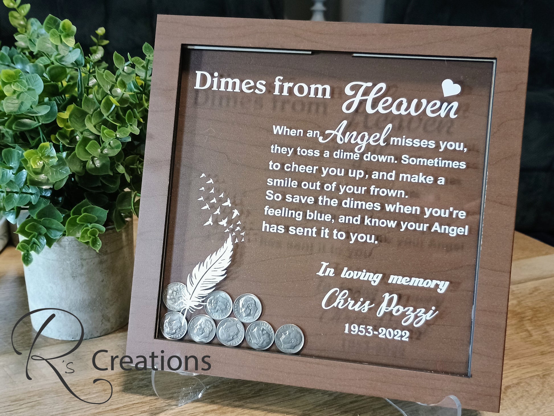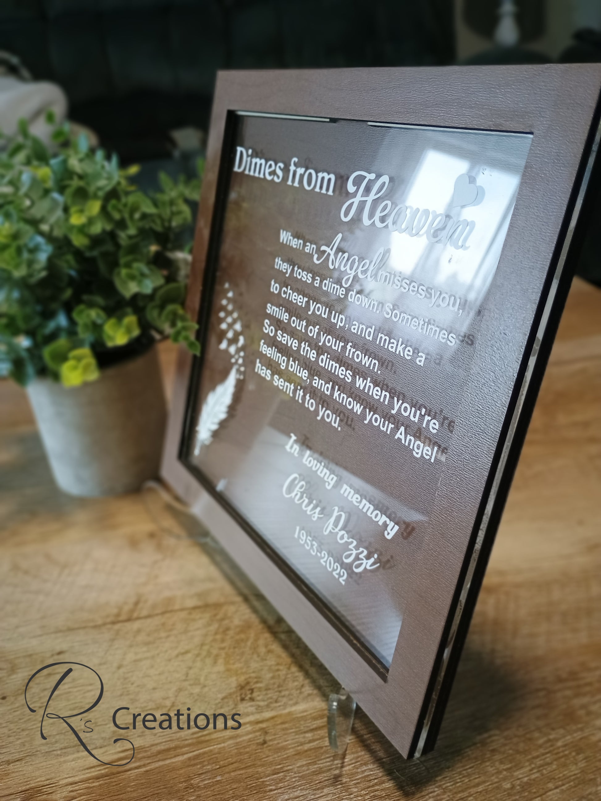 *"Dimes from heaven" keepsake, shelf sitter, bank, customized