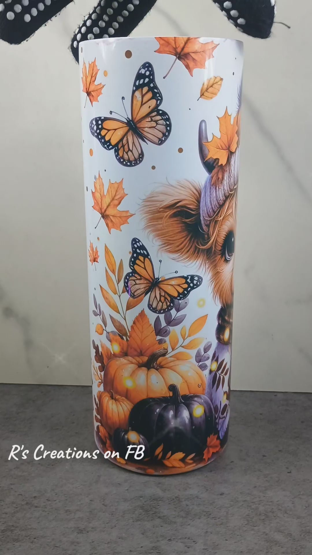 Fall tumbler. Highland cow, butterflies, pumpkins
