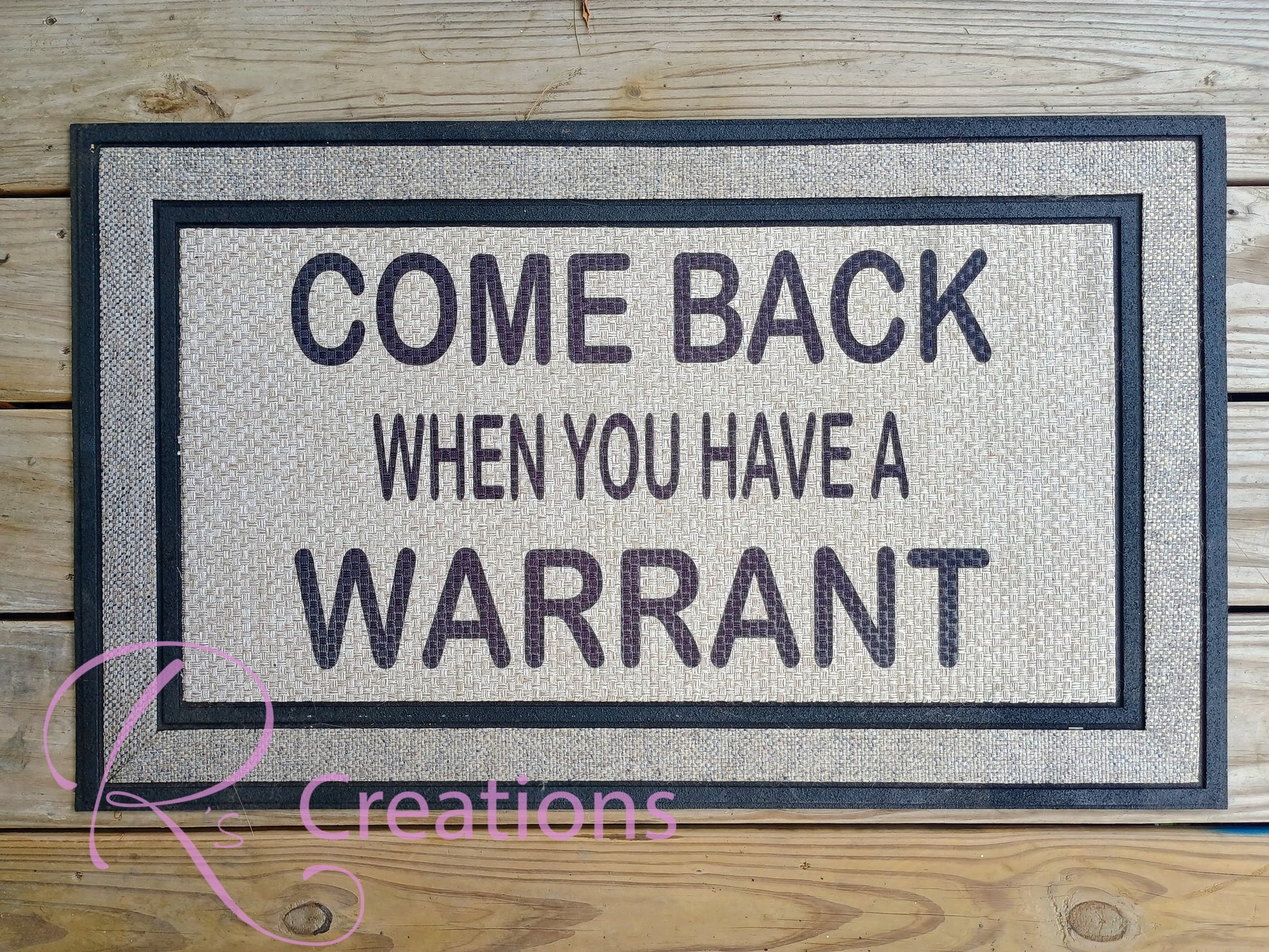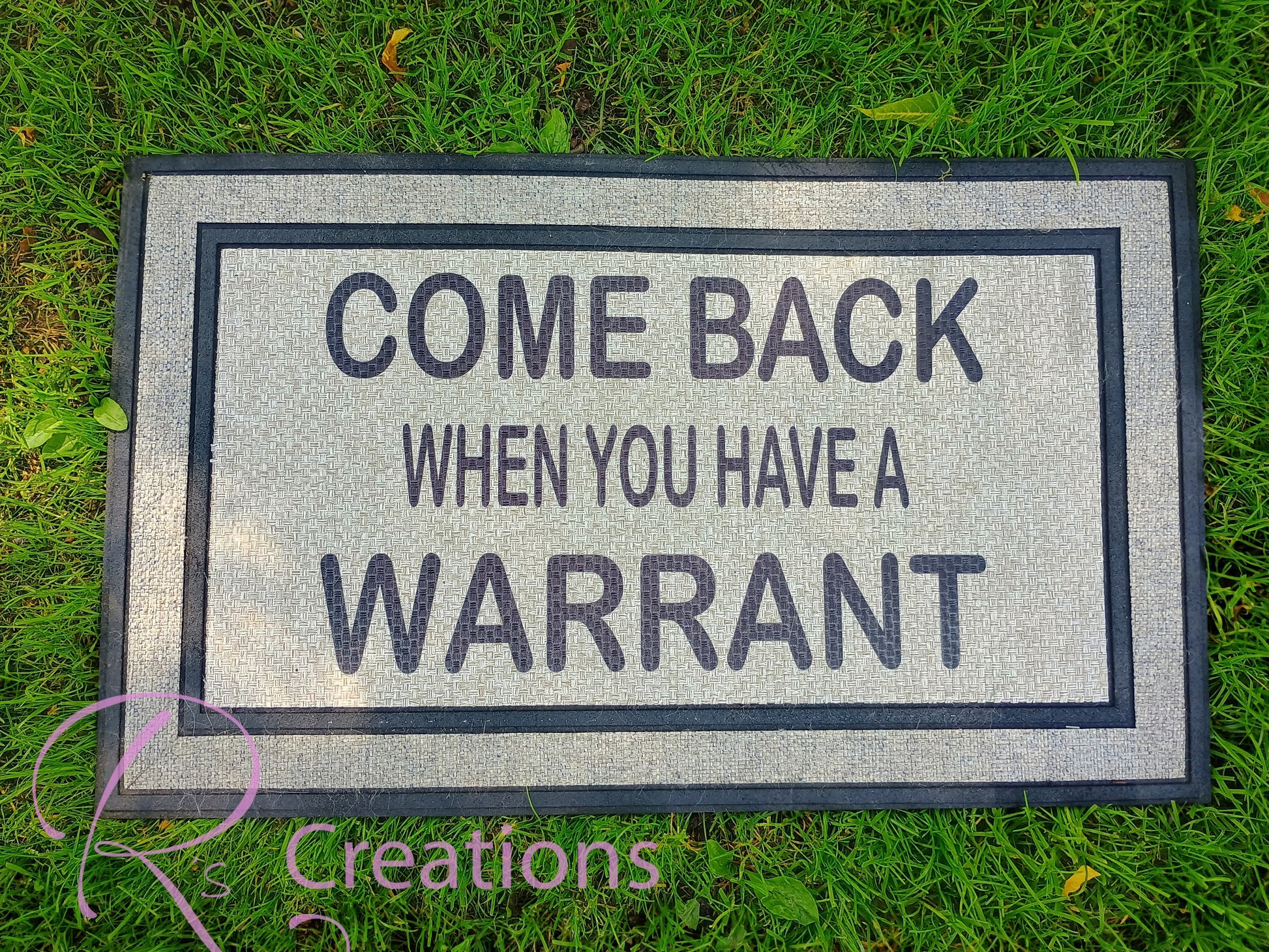 Heavy duty indoor / outdoor covered entry door mat. "Come back when you have a warrant"