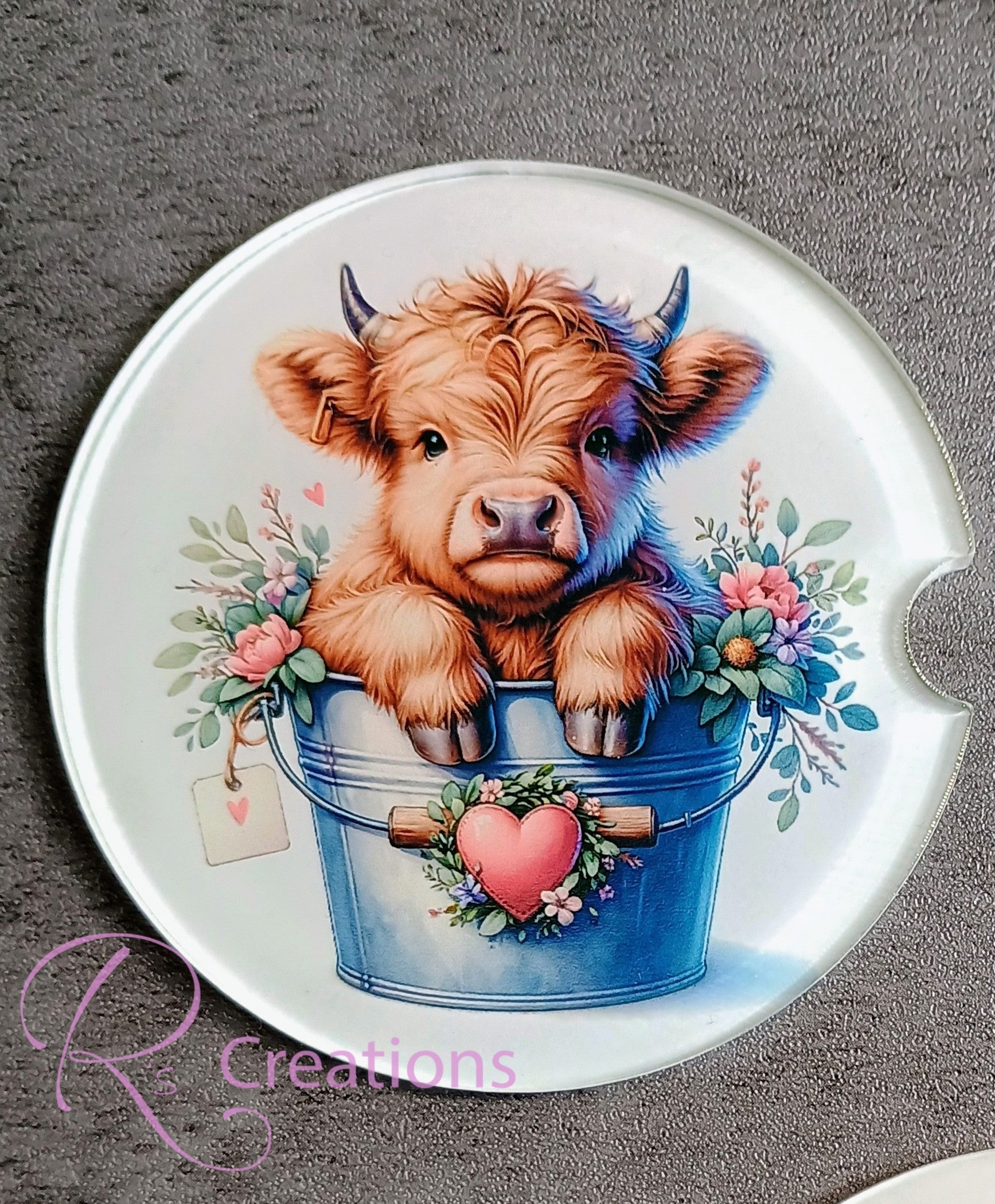 Highland cow car coaster, acrylic