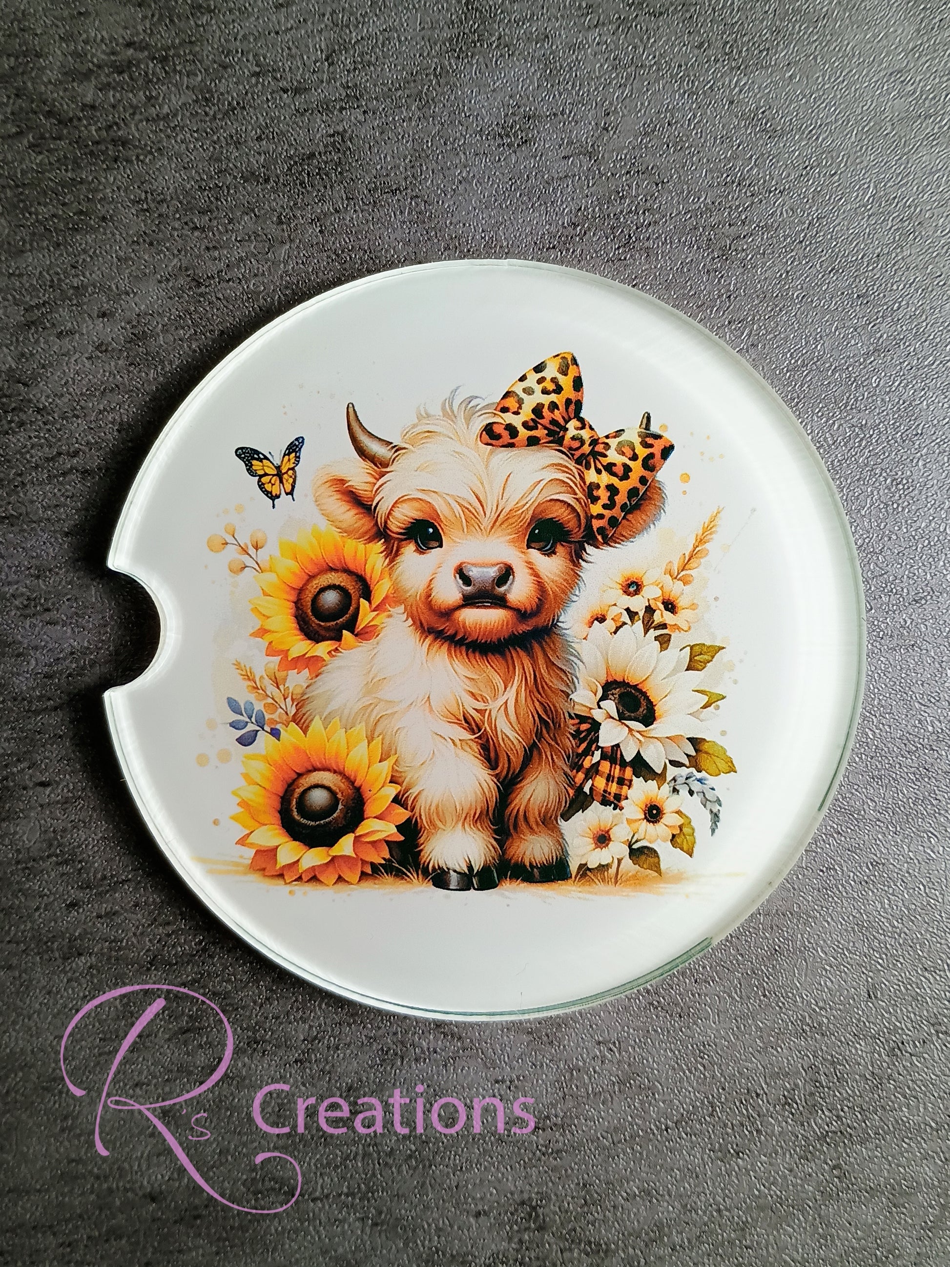 Highland cow clear acrylic coaster set, sunflowers, farm life