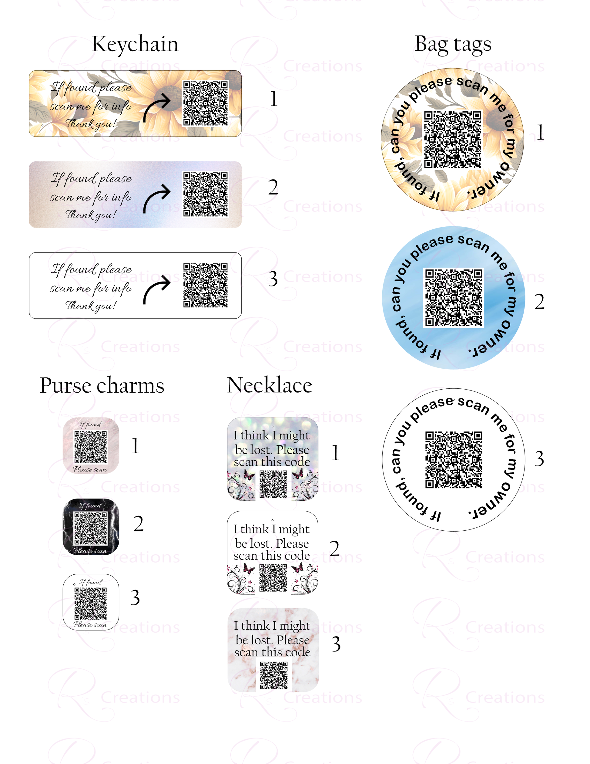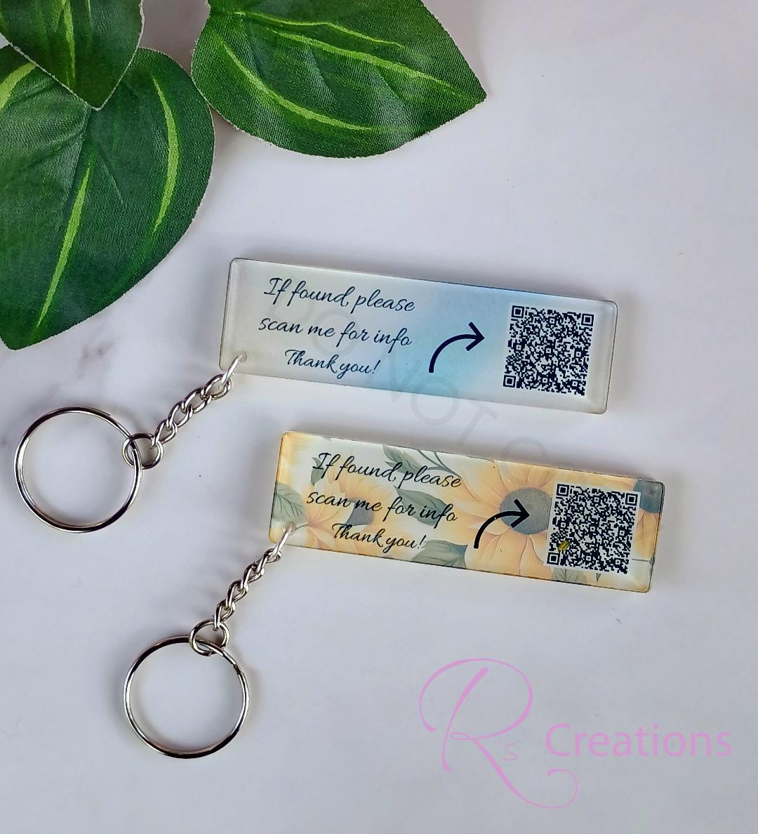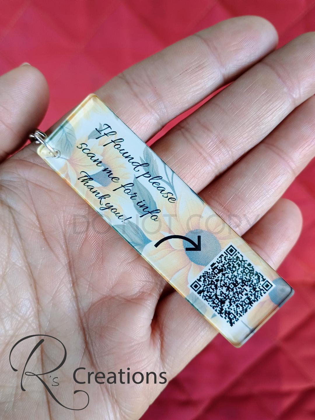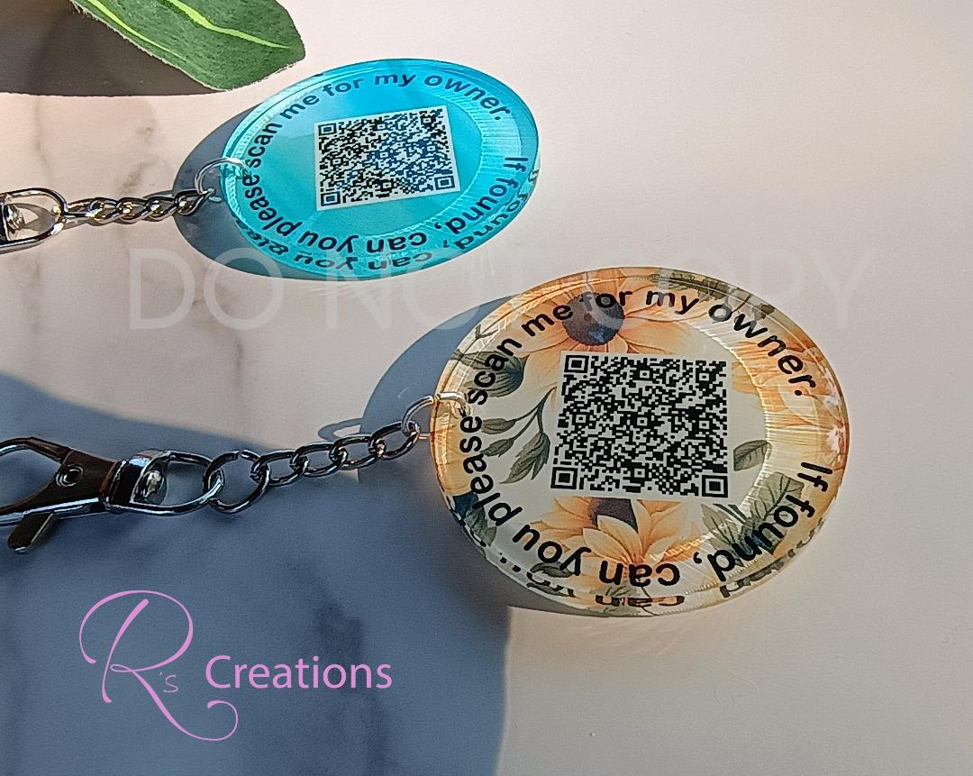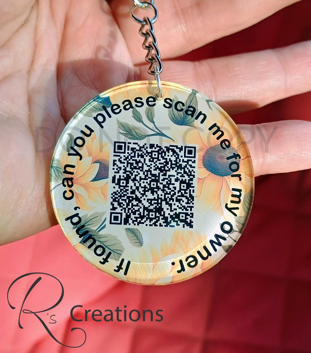 QR code emergency, lost and found, medical, tags, Custom QR codes, sunflowers, charms,