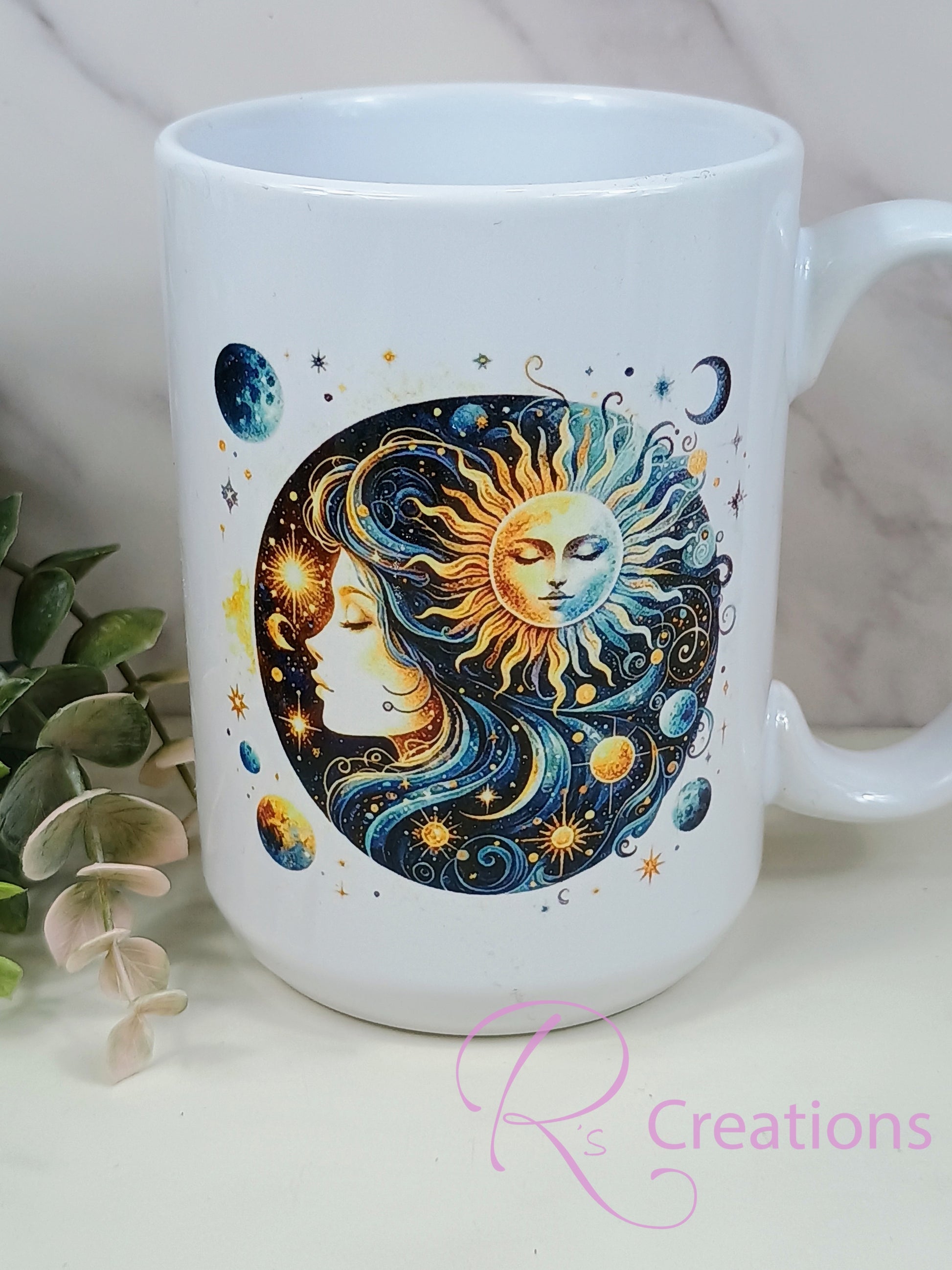 Mystical, magical crescent moon 15oz coffee mug and coaster set